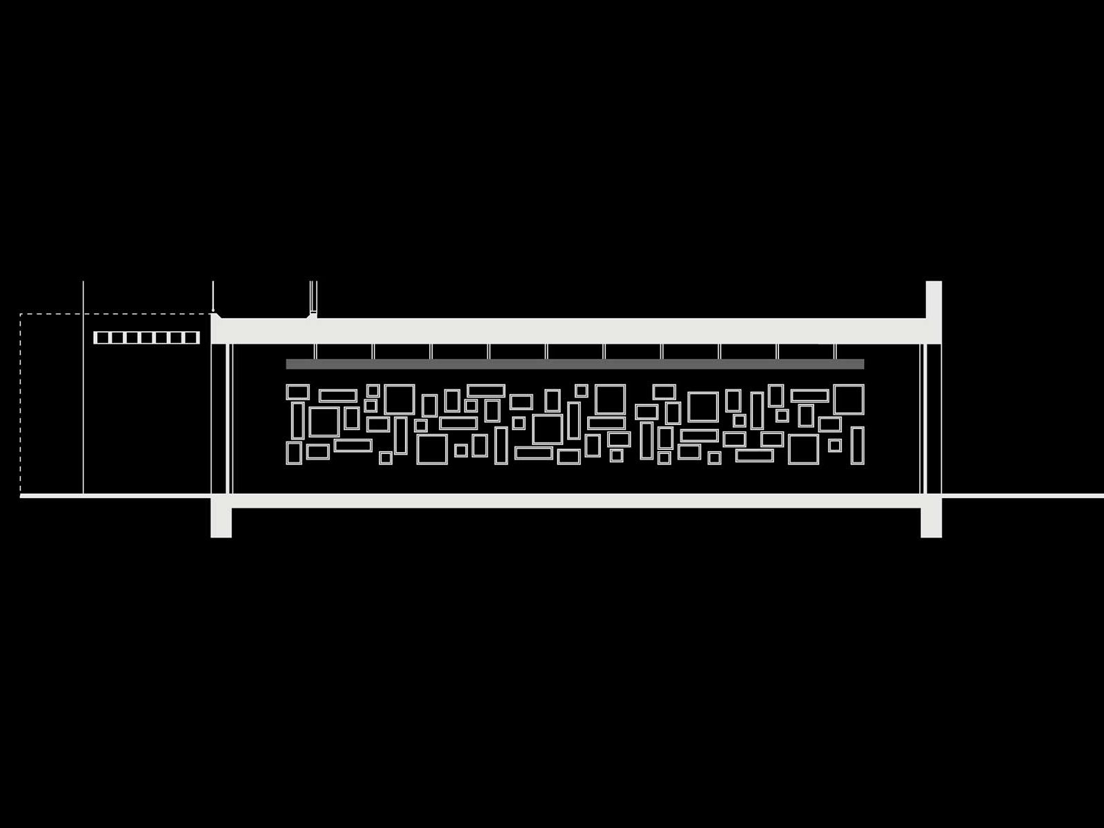 De glazen winkelpuien roepen het effect op van een verlichte tunnel. Om dit effect te versterken, zijn de randprofielen weggewerkt en is het gevelstucwerk uitgevoerd in een zwartbruine kleur. Het logo van de winkel, in zwart en goud, is op het glas geschilderd zodat het een onderdeel wordt van de gevelpui.
