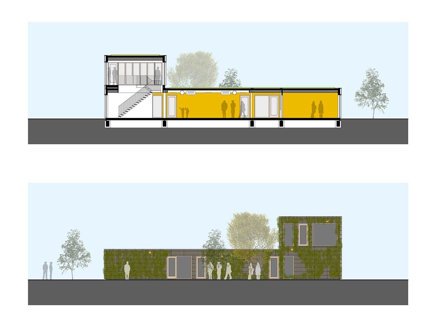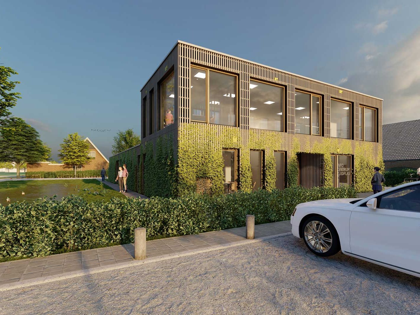 De locatie is onderdeel van een bestaande ecologische omgeving. Daarom is er zowel op gebouw- en omgevingsniveau voor gekozen om het ontwerp aan te laten sluiten op het verbeteren en bijdragen aan de biodiversiteit. Daarom wordt de gevel begroeid met Clematis en Bosrank. Vanwege deze groene gevel, in combinatie met de uitbreiding van de bestaande groenstructuur, vormt de locatie een mooie aansluiting op het Willem I bos.