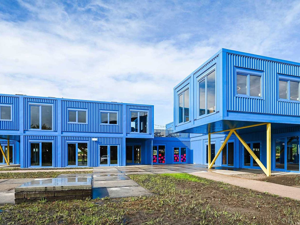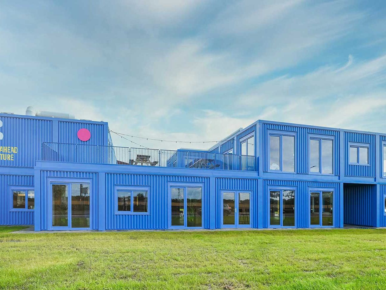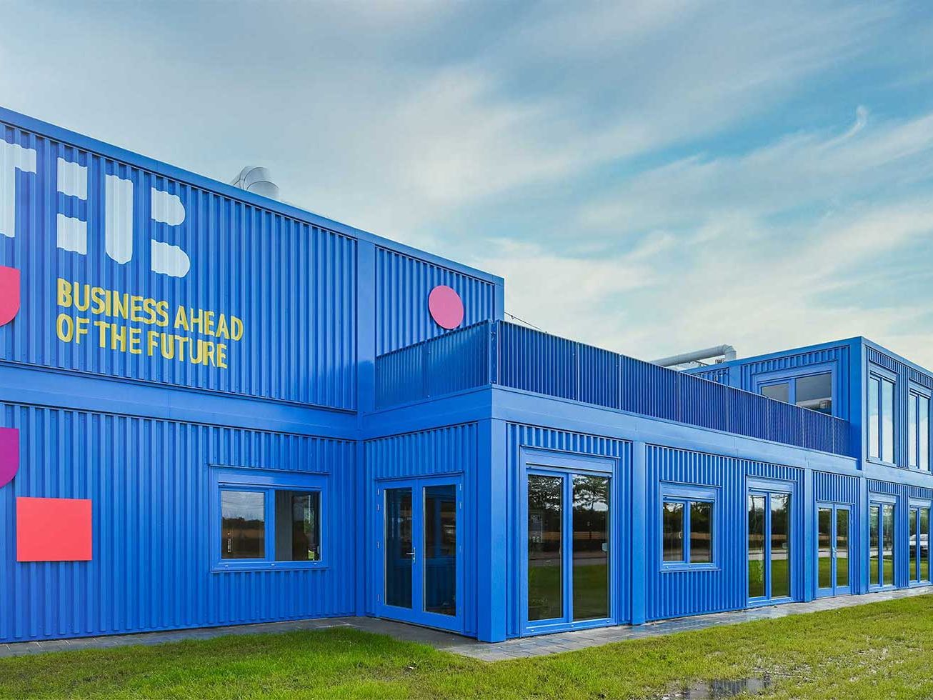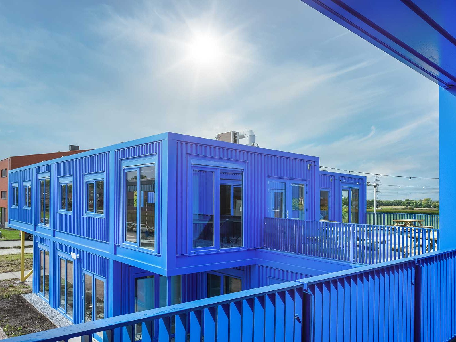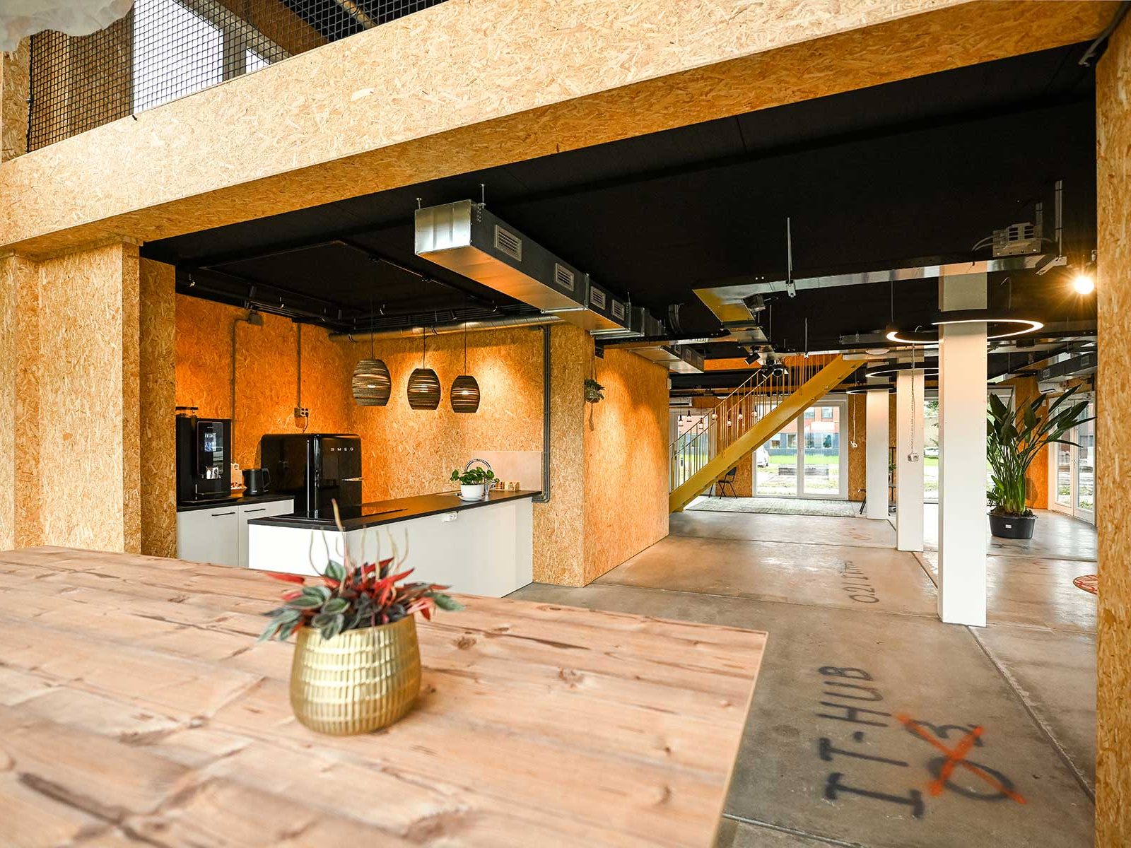 De IT HUB staat voor ontmoeting tussen het onderwijs, bedrijfsleven en startups. Vanwege de locatie op een prominente, zichtbare plek in het stationsgebied van Hoogeveen, heeft de IT HUB een signaalfunctie en draagt het bij aan de identiteit van het stationsgebied. Studio RTM kreeg de vraag om een stoer en industrieel gebouw te ontwerpen met een hippe uitstraling. Hiervoor is gekozen voor een architectuur die zich onderscheidt van de bestaande gebouwen door het kleur- en materiaalgebruik. De felblauwe, stalen gevels met gele accenten, maken het gebouw eigentijds en geven het de gewenste ongepolijste uitstraling die van een ‘hip’ gebouw verwacht mag worden. Het alzijdige gebouw is opgebouwd uit units die demontabel en herbruikbaar zijn, en is zodanig vormgegeven en gedetailleerd dat de indruk van geschakelde containers wordt gewekt.
