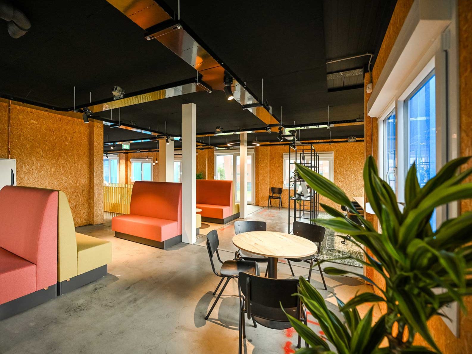 Grote, grafische uitingen, zowel binnen als buiten, dragen bij aan de hippe en herkenbare uitstraling van het geheel.
