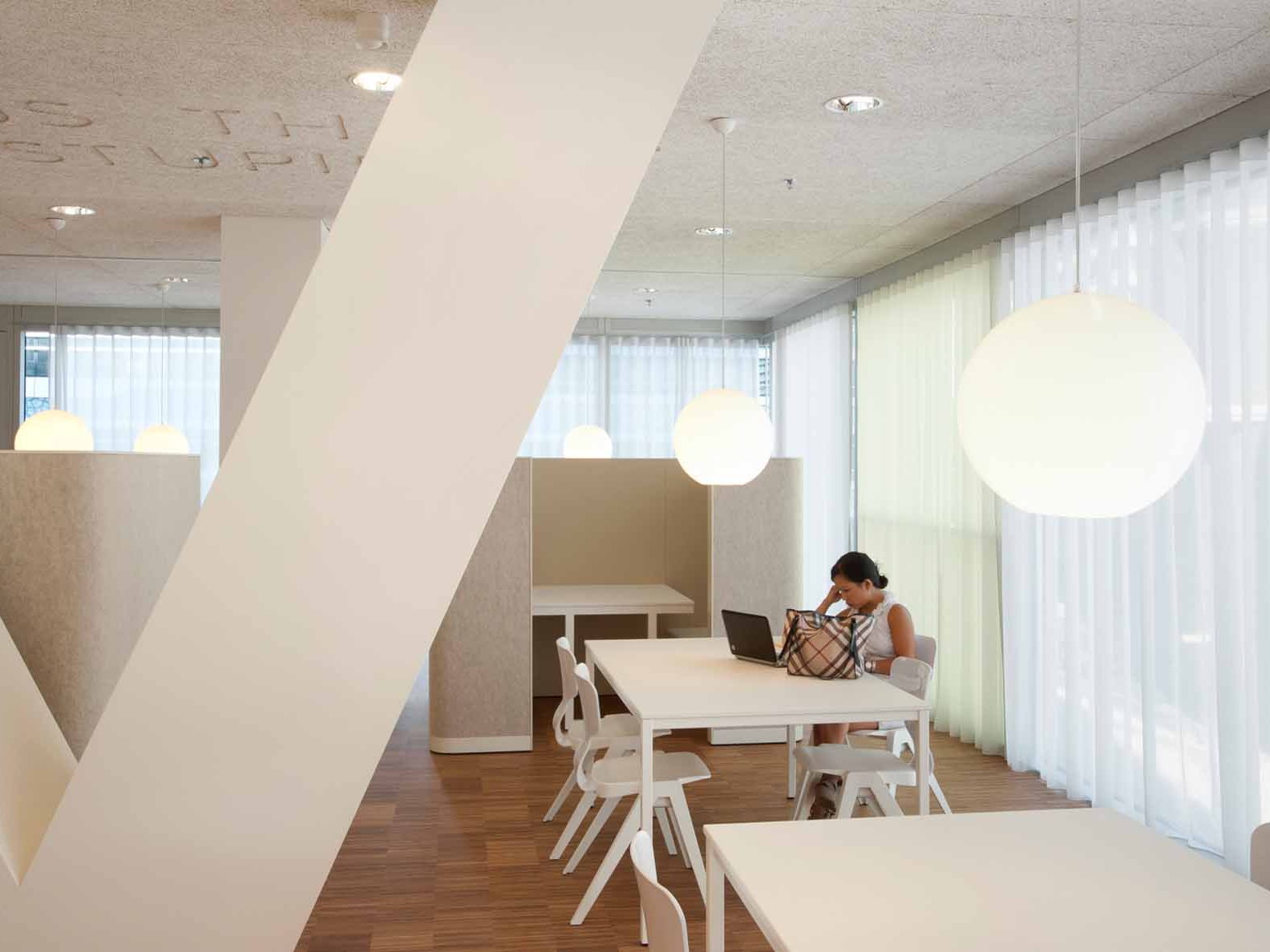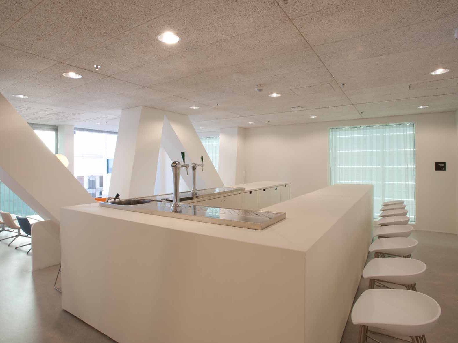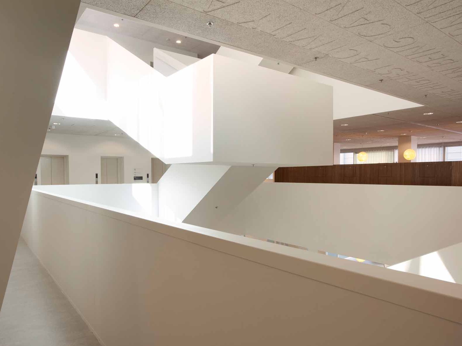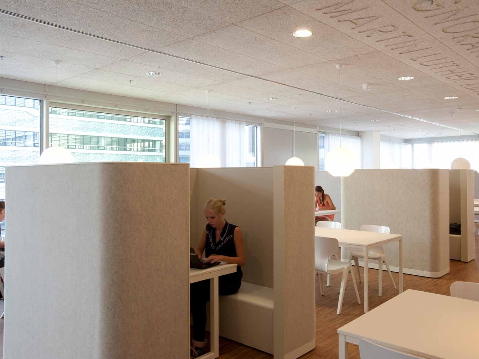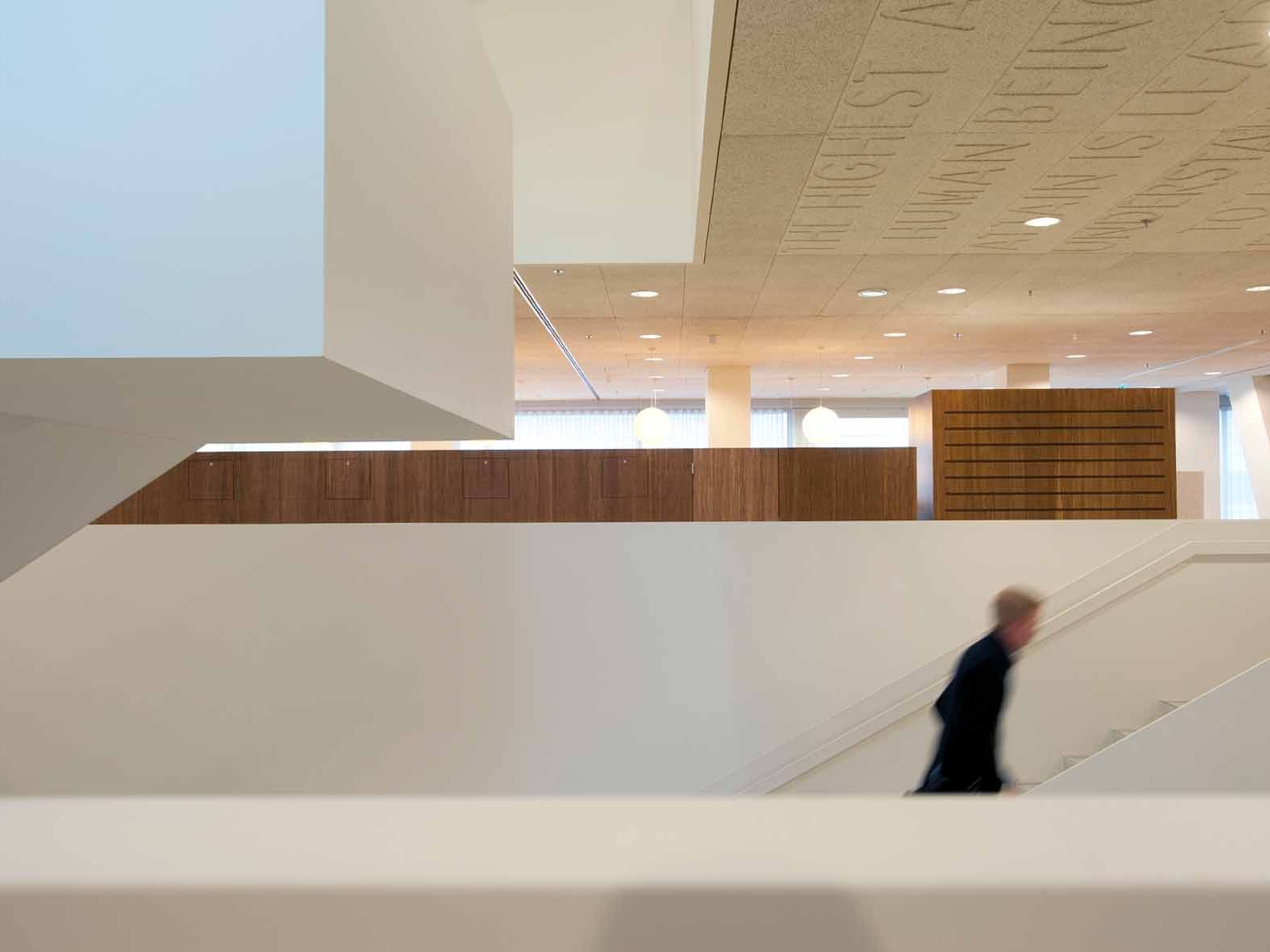 Vanuit het neutrale witte casco van Wiel Arets Architects worden er materiaalaccenten gelegd op vloeren, wanden, plafonds, meubels en verlichting. Door voor deze accenten te kiezen voor duurzame materialen wordt duurzaamheid zichtbaar en wordt een visuele en tactiele verbijzondering aan ruimtes meegegeven waardoor sterke, unieke ruimtes met een duidelijke identiteit worden gecreëerd.