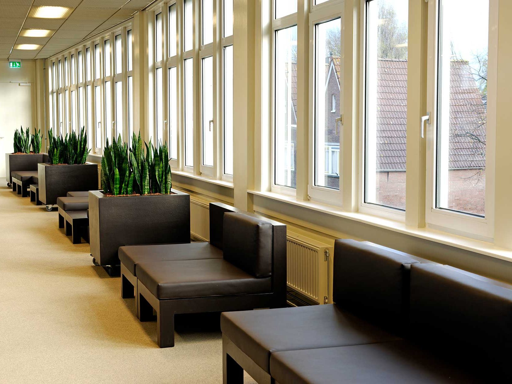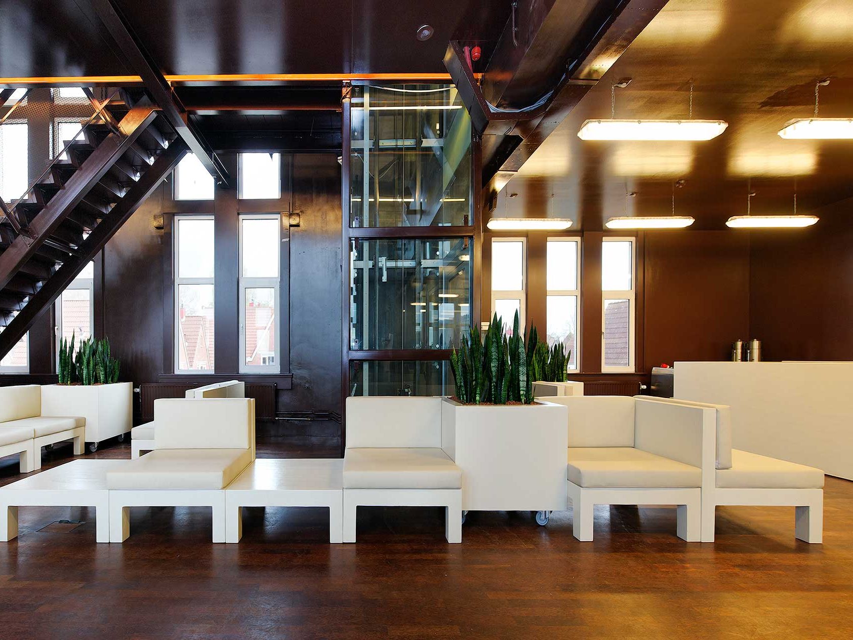 Naast maatwerk meubilair, zoals de PU-meubelen en steenfineer-bloembakken, die onderdeel zijn van de PLUS-lijn, zijn er over het algemeen standaard meubelen toegepast die door PLUS zijn gemodificeerd, waardoor ze zijn afgestemd op de kleurstelling en materialisering van het integrale plan.