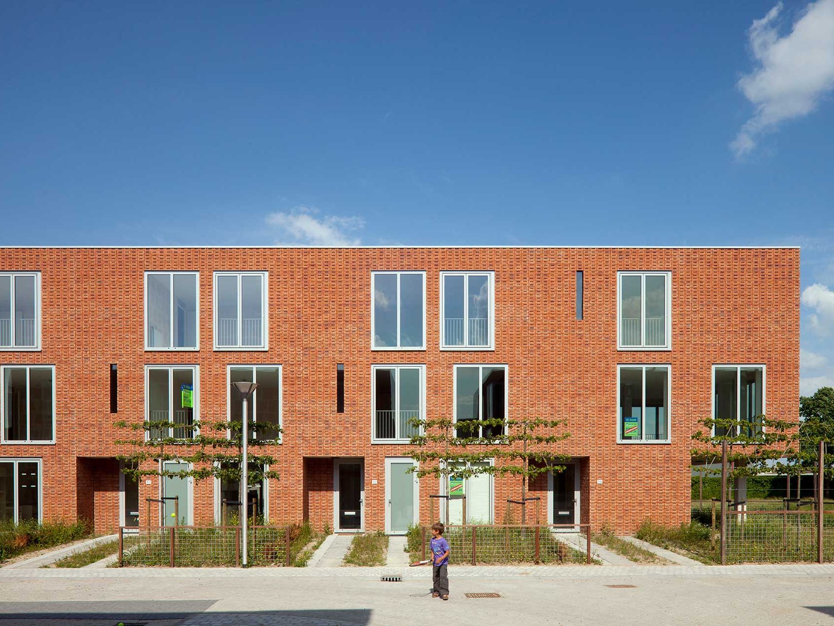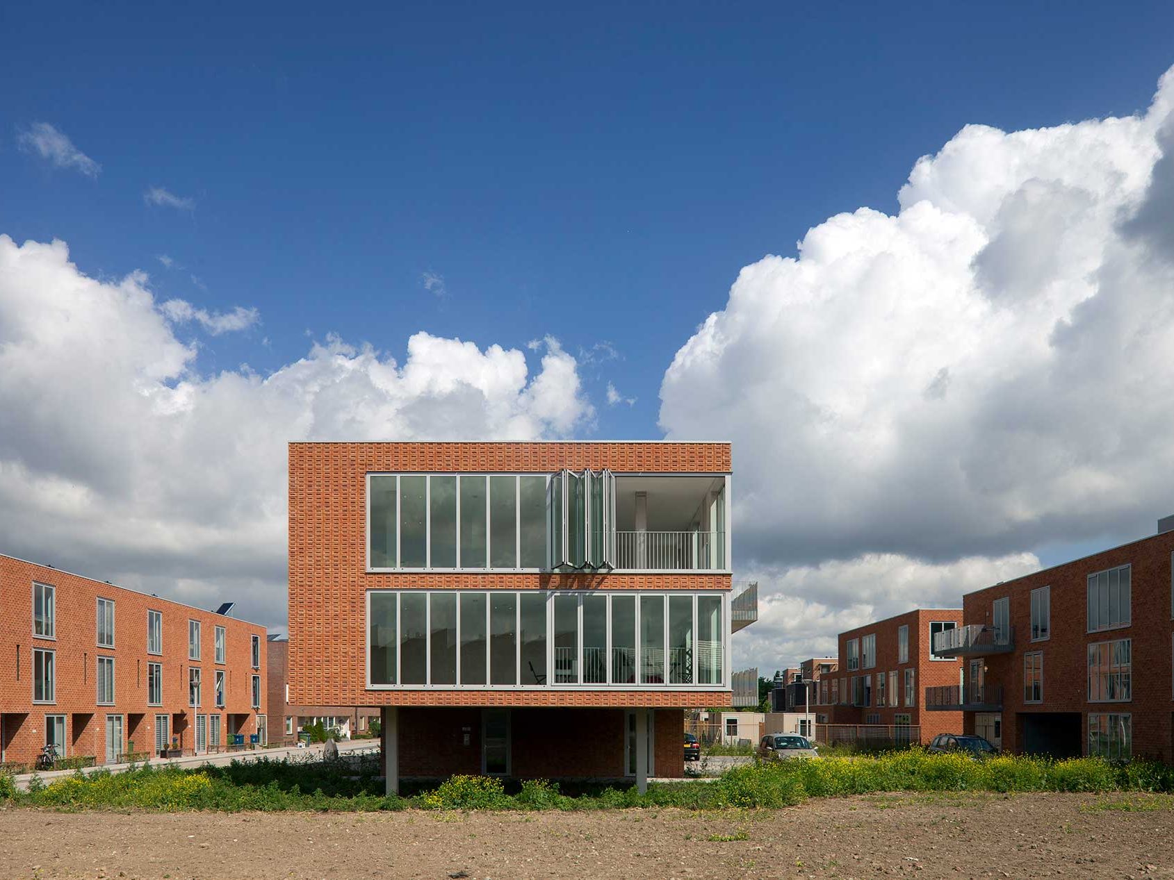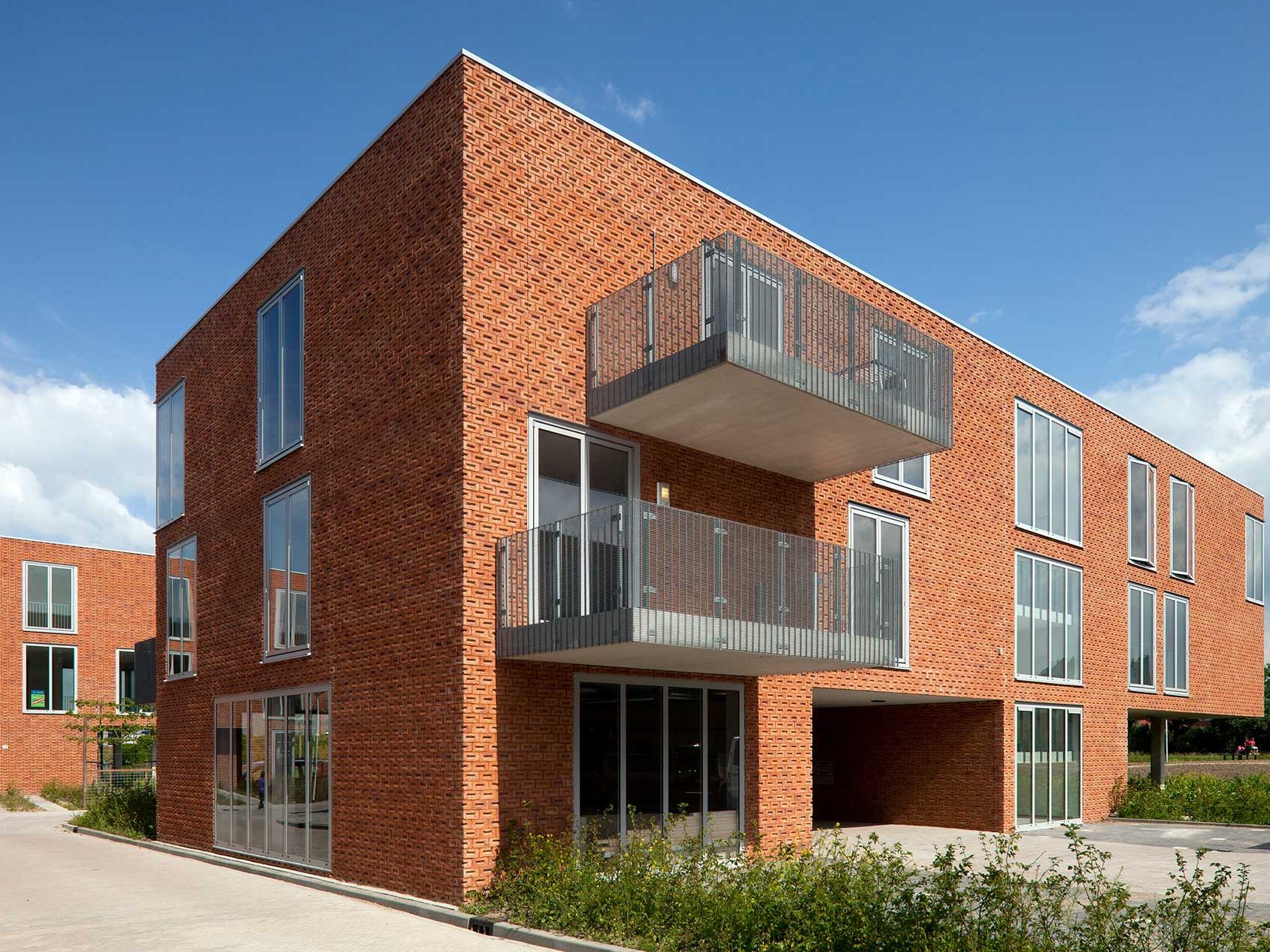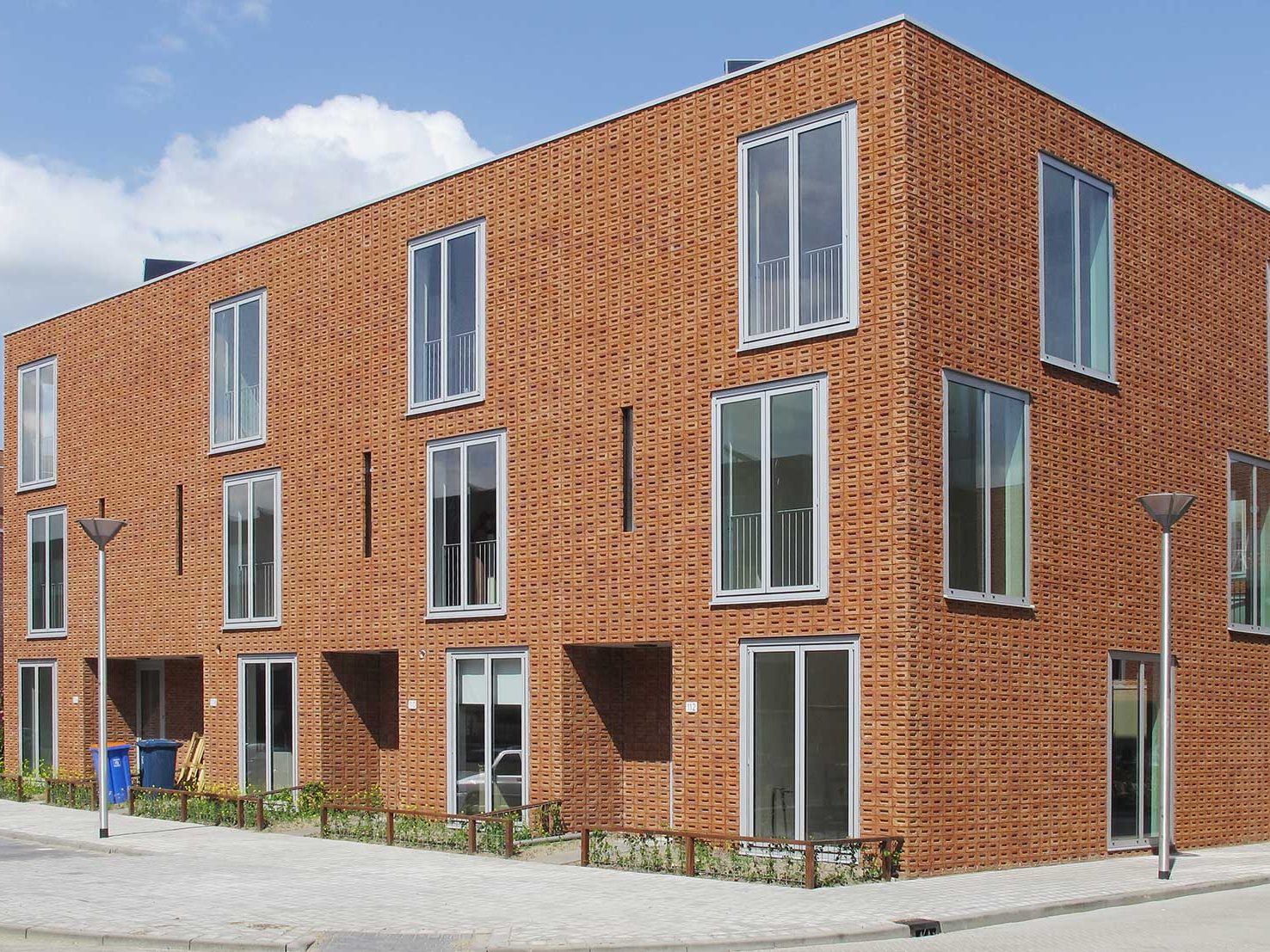 De subtiele detaillering met puien die in het gevelvlak liggen en in verstek gelijmde hoekstenen, levert robuuste baksteenblokken op met een sobere detaillering en materialisering.