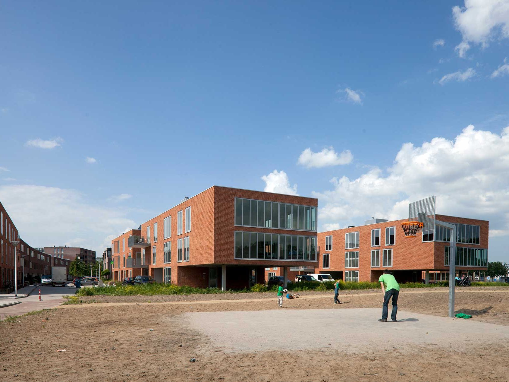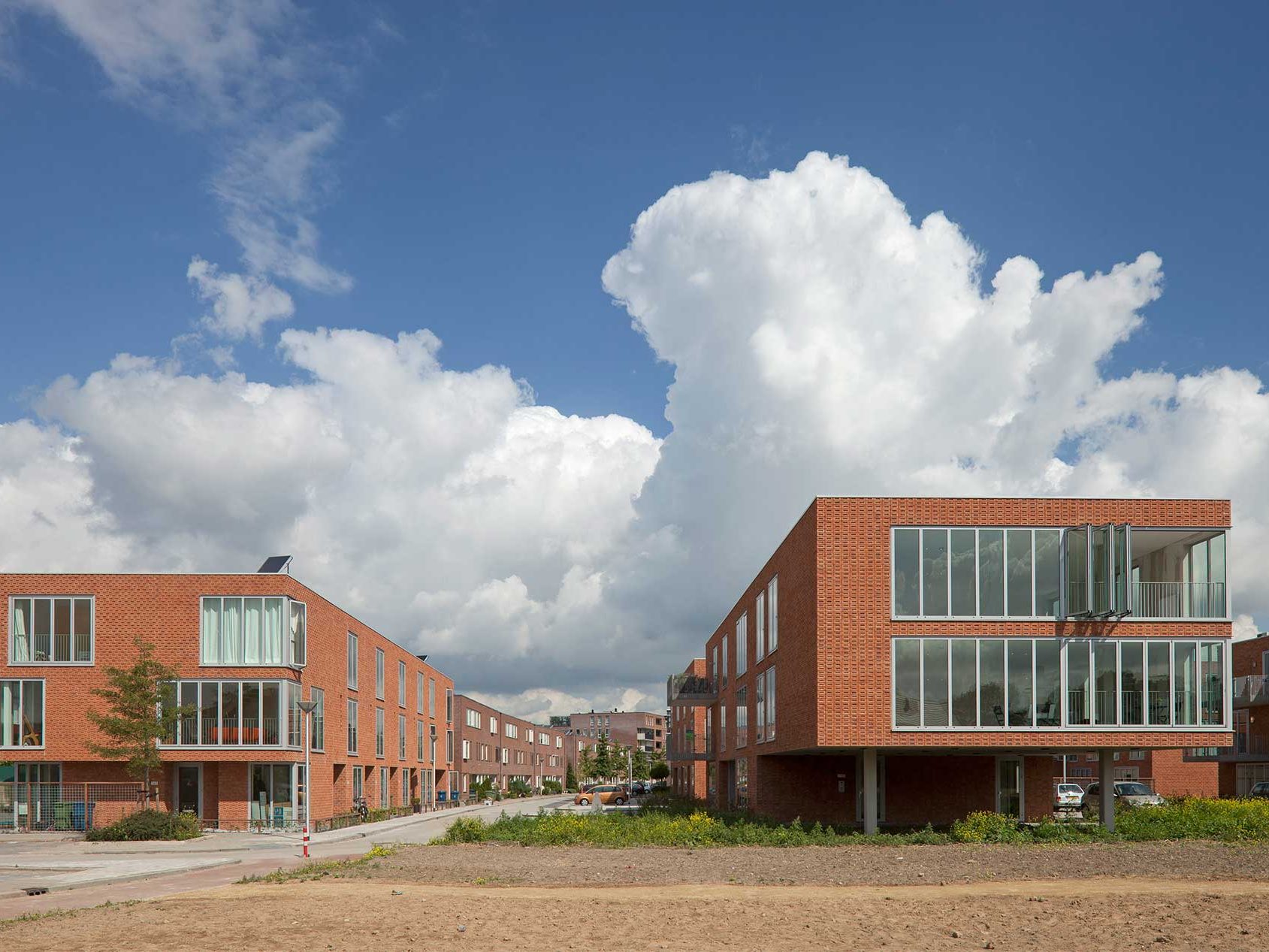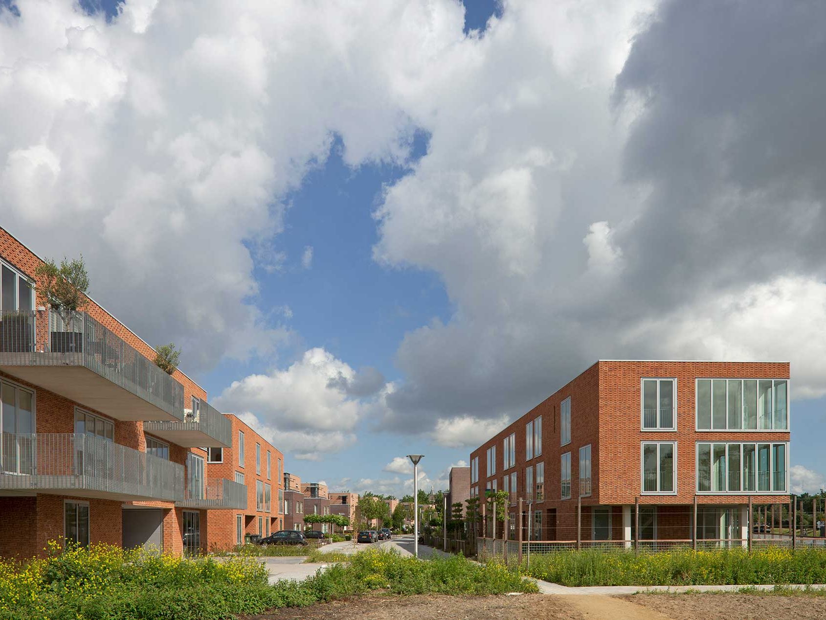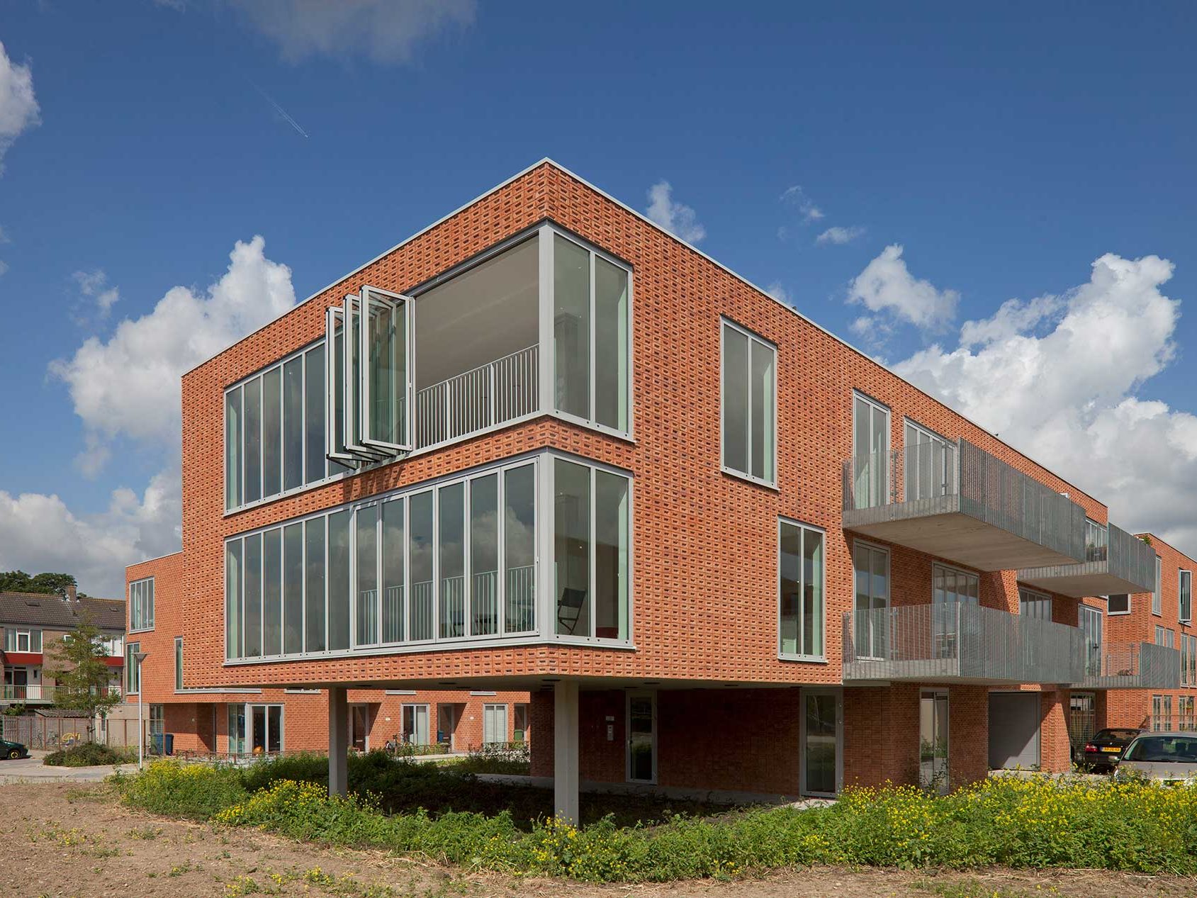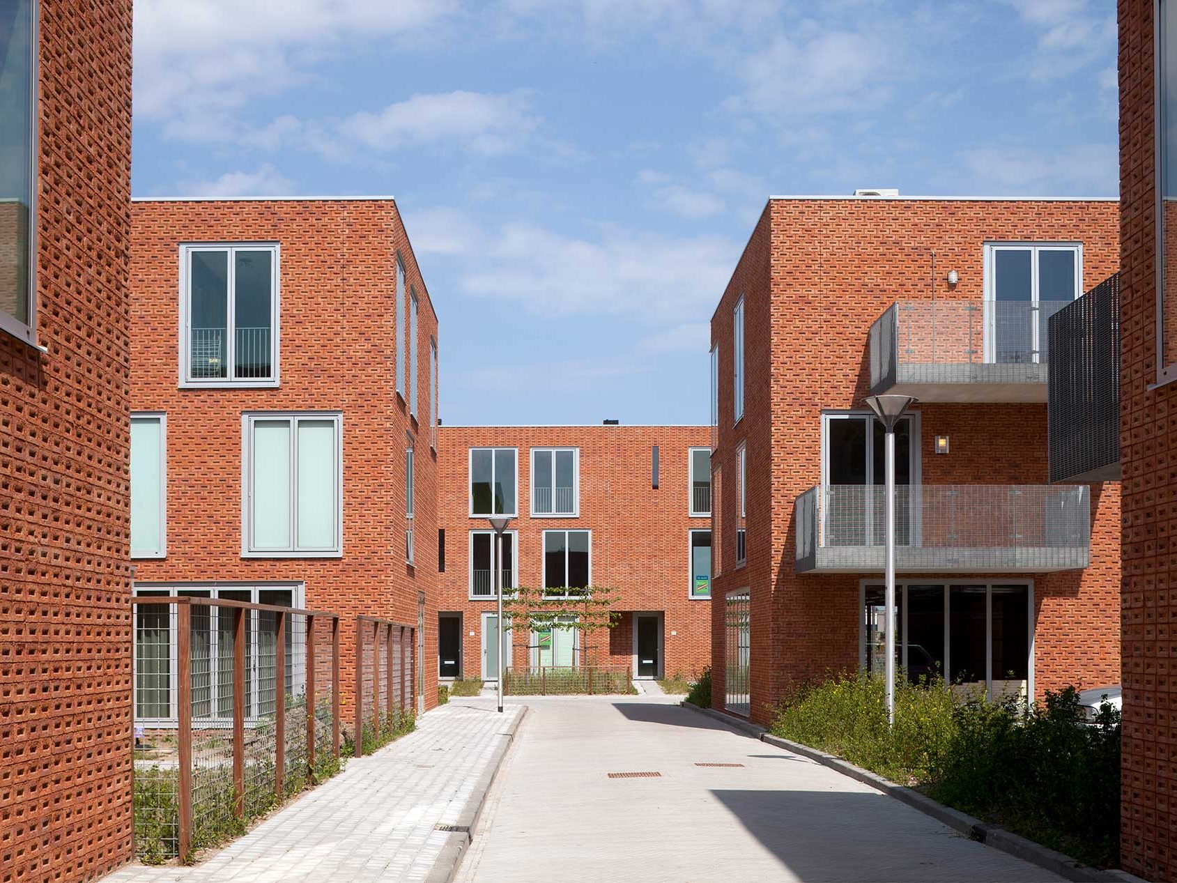 De subtiele detaillering met puien die in het gevelvlak liggen en in verstek gelijmde hoekstenen, levert robuuste baksteenblokken op met een sobere detaillering en materialisering.